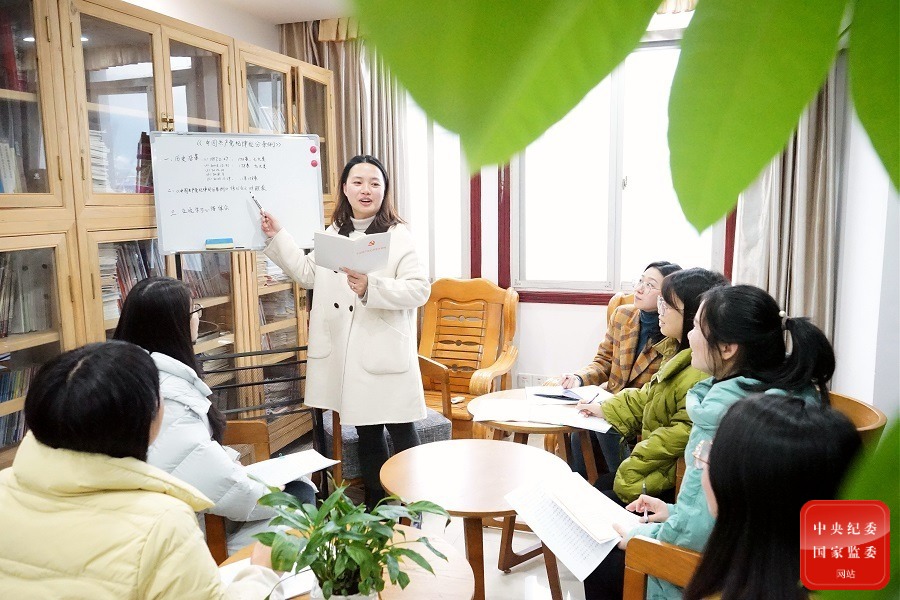 江西省赣州市石城县纪委监委不断强化纪检监察干部纪法知识学习,以党支部专题学习会、读书沙龙、纪法研讨等形式,有效提升全县纪检监察干部纪法素养。图为该县纪检监察干部通过诵读原文、讲解历史沿革、问答修订前后区别等方式学习新修订的《中国共产党纪律处分条例》。(江西省赣州市石城县纪委监委供 李方圆 摄)